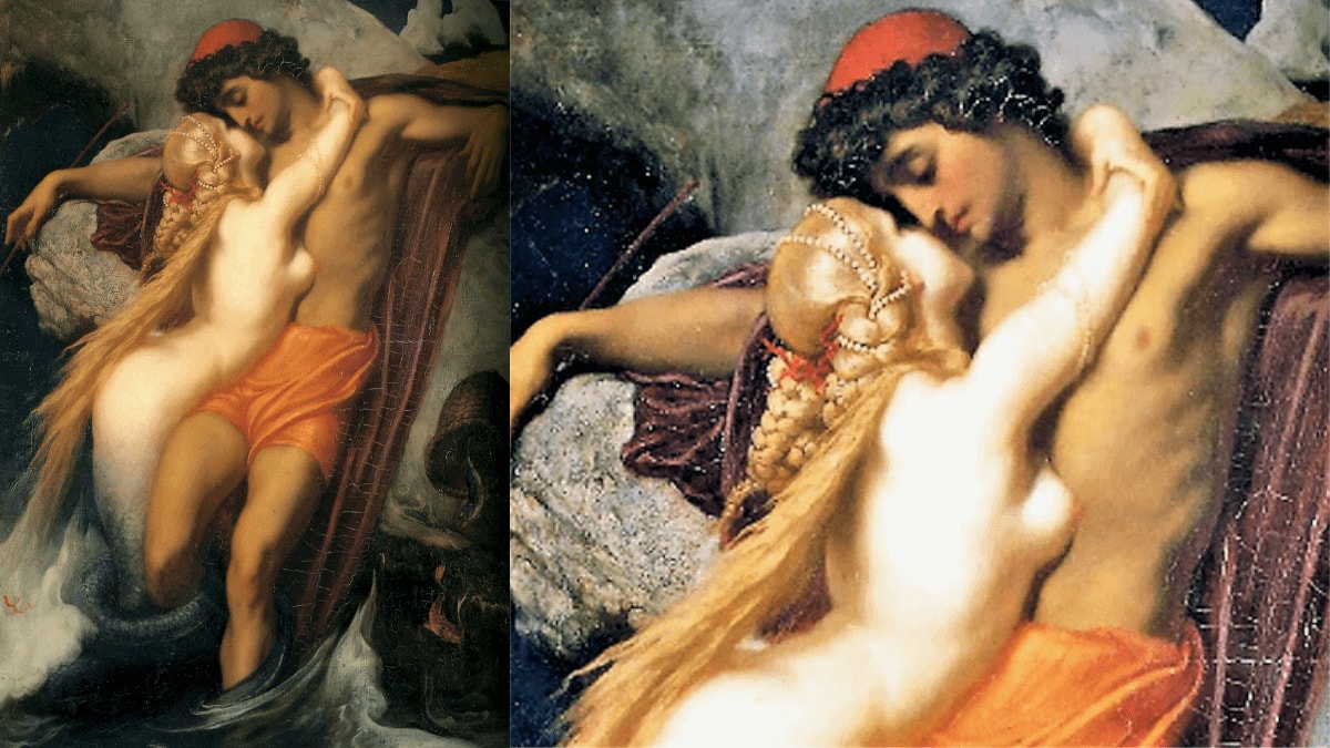 In this beautiful painting on love, you can see the flirtatious duo lovingly gazing into each other’s eyes, giving us a glimpse of their young love.