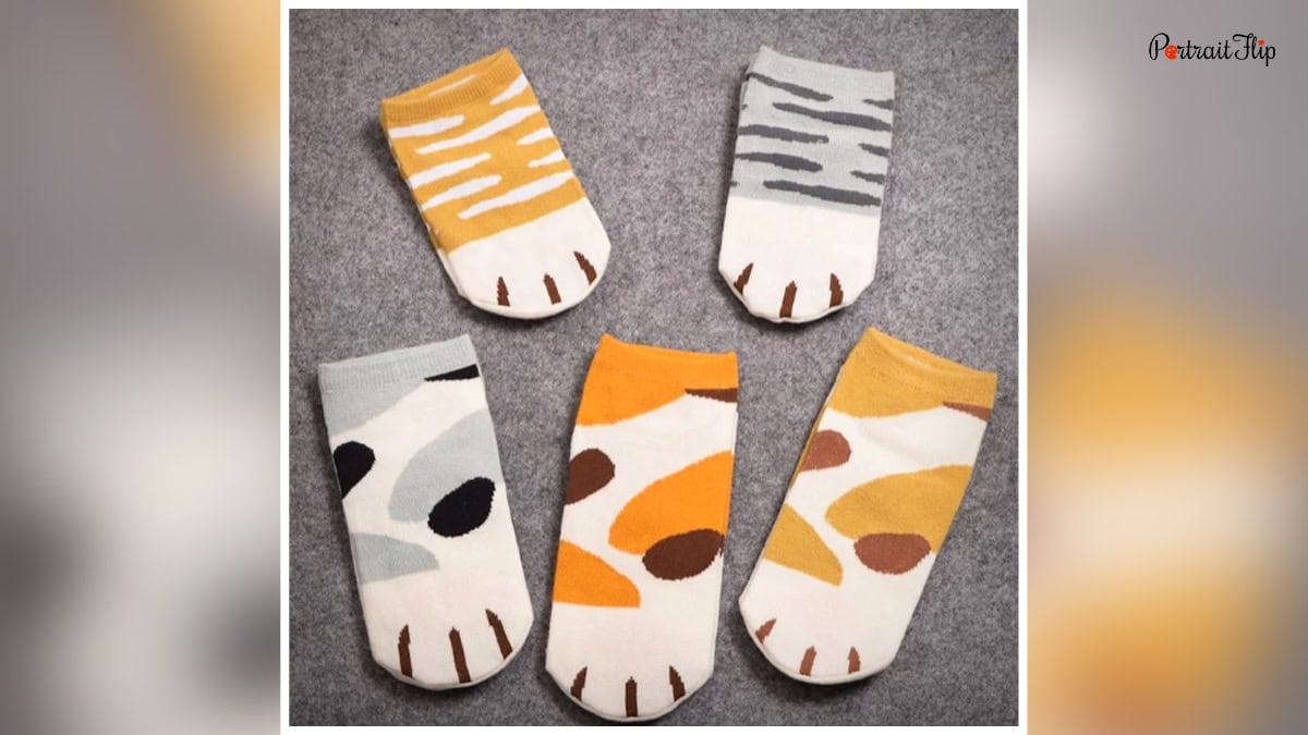 These adorable paw-design socks keep feet warm and spirits high, letting cat lovers flaunt their love for felines in style. Also, it’s a fun, cozy gift that sparks smiles with every step.