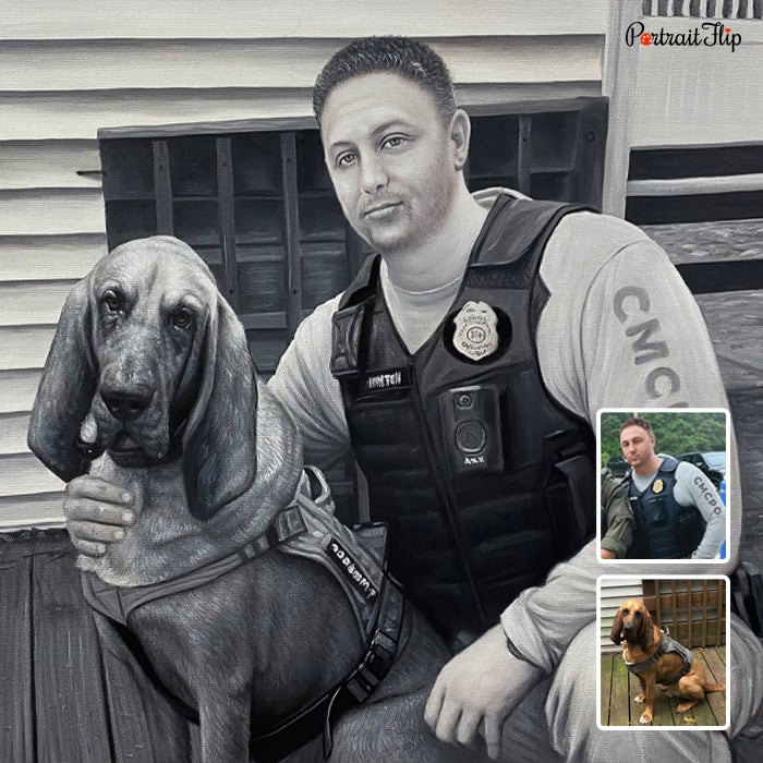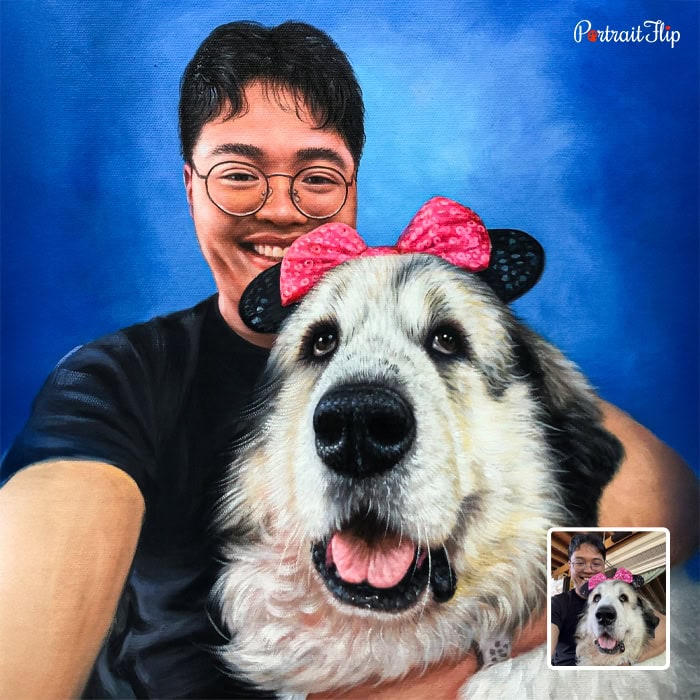 A painting of family members with their pets is a great idea for gifting and home decor. In just four easy steps, merge your beloved photos with your pet into a beautiful custom pet family portrait.
